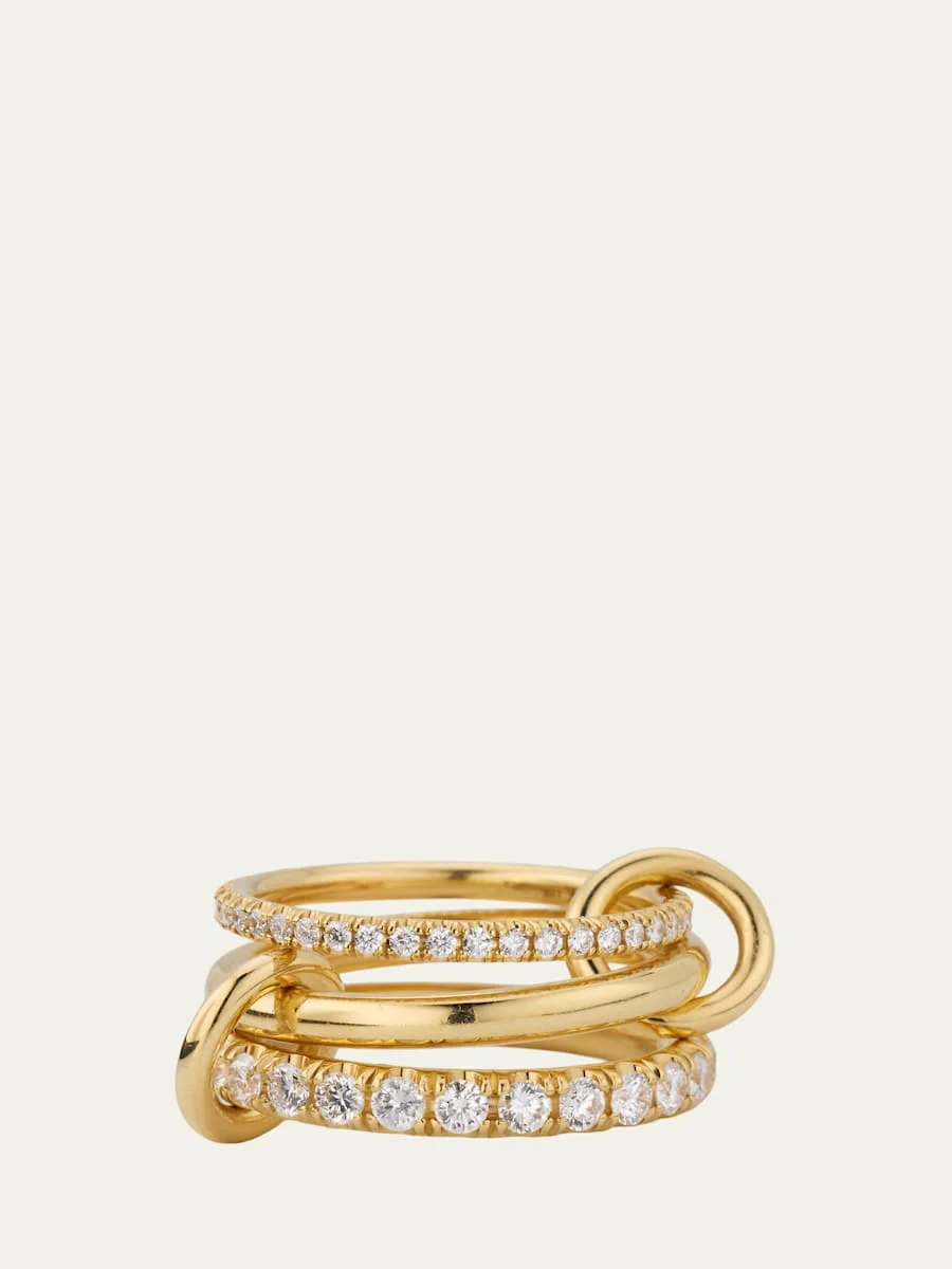 Spinelli Kilcollin rings are crafted with bands, annulets, and connectors. Composed of three links, the Norah ring is highlighted by two rows of white diamonds. Polished 18karat yellow gold 1.65 total diamond carat weight Made in USA