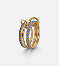 Spinelli Kilcollin's jewelry is handcrafted locally by a team of artisans in Los Angeles. The Norah ring boasts a modular design, featuring three core bands in 18kt yellow gold, linked by orbiting connectors and embellished with two gleaming pave of sapphires, totaling 1.9ctw. Product Details - Material: 18kt yellow gold - Made in the USA - Item color: gold, blue - Stone I: 73 sapphires, round-cut, pave setting - Carat total weight (ctw): 1.9 - Item number: P01118702 Size & Fit - Max. width 13mm-0.5"