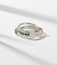 Spinelli Kilcollin's jewelry is handcrafted locally by a team of artisans in Los Angeles. The Petunia Eclipse rings are crafted from 925 sterling silver, are adorned with a row of diamonds, and are linked together with 18kt yellow gold connectors. Product Details - Material: 925 sterling silver, 18kt yellow gold - Handmade in the USA - Item color: silver - Stone I: 28 diamonds, VS1 clarity grade, G color grade, 1.2ctw - This piece features natural diamonds only - Item number: P01118712 Size & Fit - Max. width 13mm-0.5"