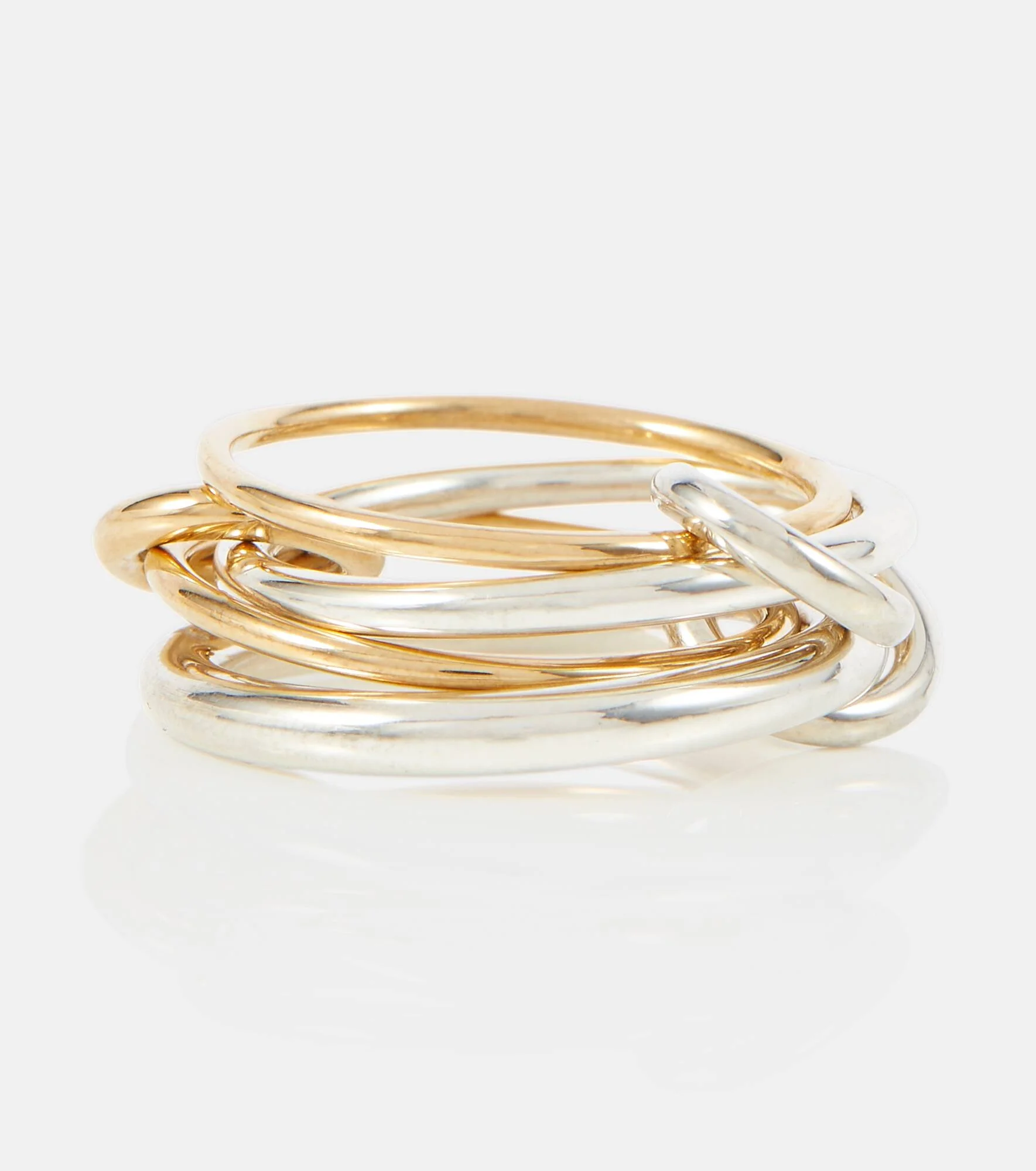 Spinelli Kilcollin's jewelry is handcrafted locally by a team of artisans in Los Angeles. Inspired by astrology, the Pisces ring is made from a mixture of 18kt yellow gold and sterling silver to create a four-ring stack that is connected by the brand's signature links. Product Details - Material: 18kt yellow gold, 925 sterling silver - Made in the USA - Designer color name: Silver/Yellow Gold - Item number: P00752873 Size & Fit - Max. width 11mm-0.45"