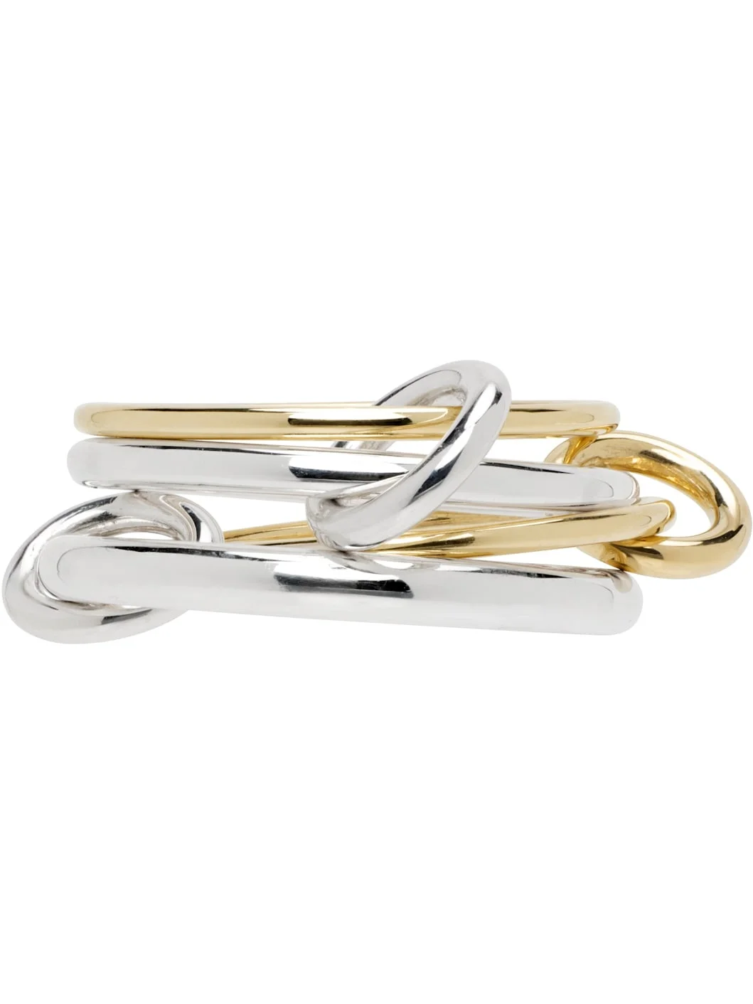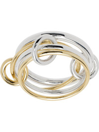 Handcrafted tiered band ring in sterling silver and 18k gold. O-rings throughout. Supplier color: Silver/Yellow gold 18k gold, 925 sterling silver. Made in United States 251558F011018