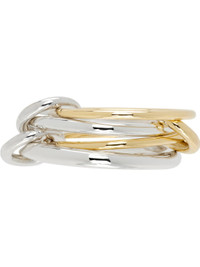 Handcrafted stacked rings in 18k gold and sterling silver. Connecting hoops at length. Supplier color: Yellow gold/Silver 18k gold, 925 sterling silver. Made in United States 252558F011014