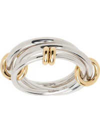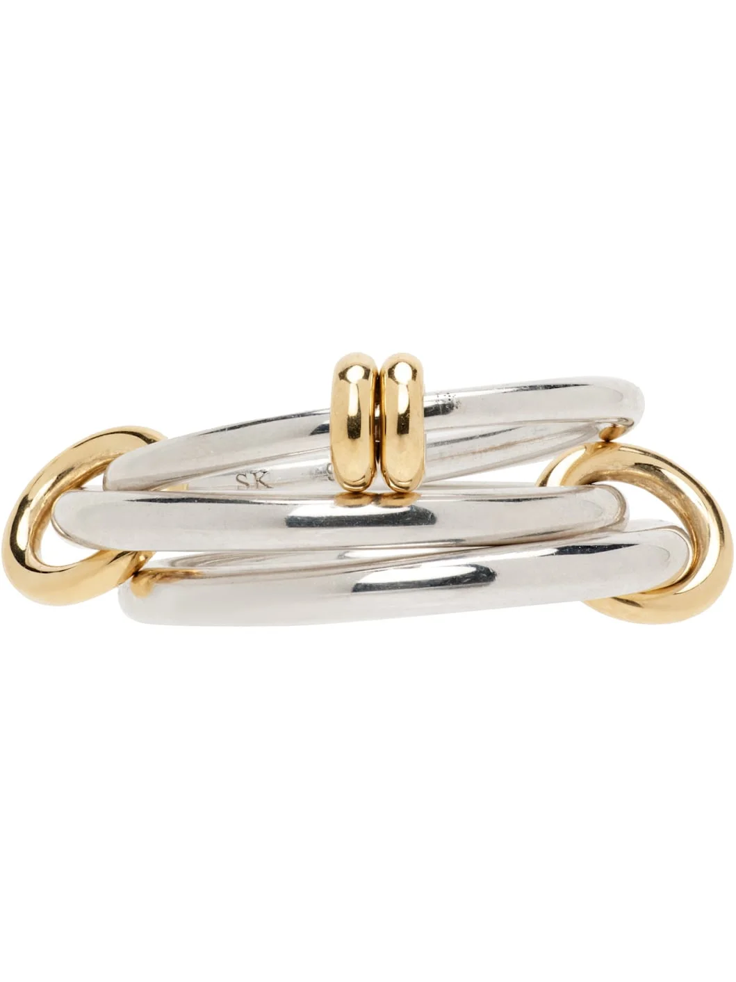 Handcrafted stacked rings in sterling silver. · Connecting hoops and O-rings in 18k yellow gold · Hallmarking at inner band Supplier color: Silver/Gold 925 sterling silver, 18k gold. Made in United States 252558F011013