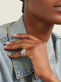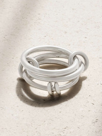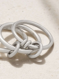 EDITORS'NOTES Spinelli Kilcollin's iconic 'Galaxy' rings earned their name after designer Yves Spinelli noticed they were interlinked just like planets or stars. Handcrafted in the label's LA studio from polished sterling silver, this 'Raneth' set of three is orbited by smaller bands linking them together, so you can wear them spread across three fingers or stacked onto one. SIZE & FIT - US sizing - Measurements can be found in the link below DETAILS & CARE - This piece is handmade and as such may have some small flecks or scratches - This piece has been certified in accordance with the Hallmarking Act 1973