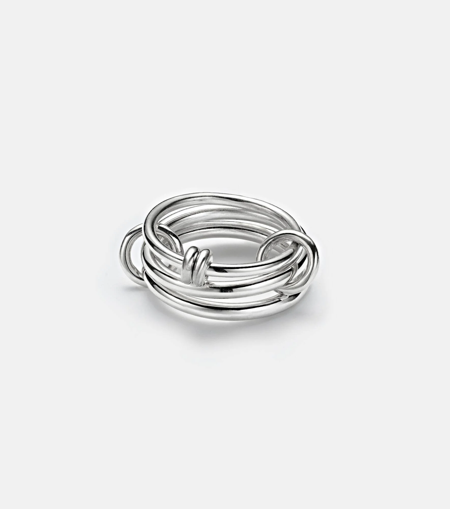 Spinelli Kilcollin's jewelry is handcrafted locally by a team of artisans in Los Angeles. The Raneth ring has a minimalist design that features three core bands in sterling silver, linked by sleek connectors. Product Details - Material: 925 sterling silver - Handmade in the USA - Item color: silver - Item number: P01071838 Size & Fit - Max. width 14mm-0.55"