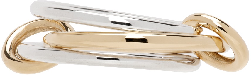 Handcrafted tiered band ring in sterling silver and 18k yellow gold. O-rings in 18k yellow gold. Supplier color: Silver/Yellow gold 18k gold, 925 sterling silver. Made in United States 242558F011013
