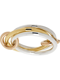 Handcrafted tiered band ring in sterling silver and 18k yellow gold. O-rings in 18k rose gold. Supplier color: 18k gold 18k gold, 925 sterling silver. Made in United States 251558F011009