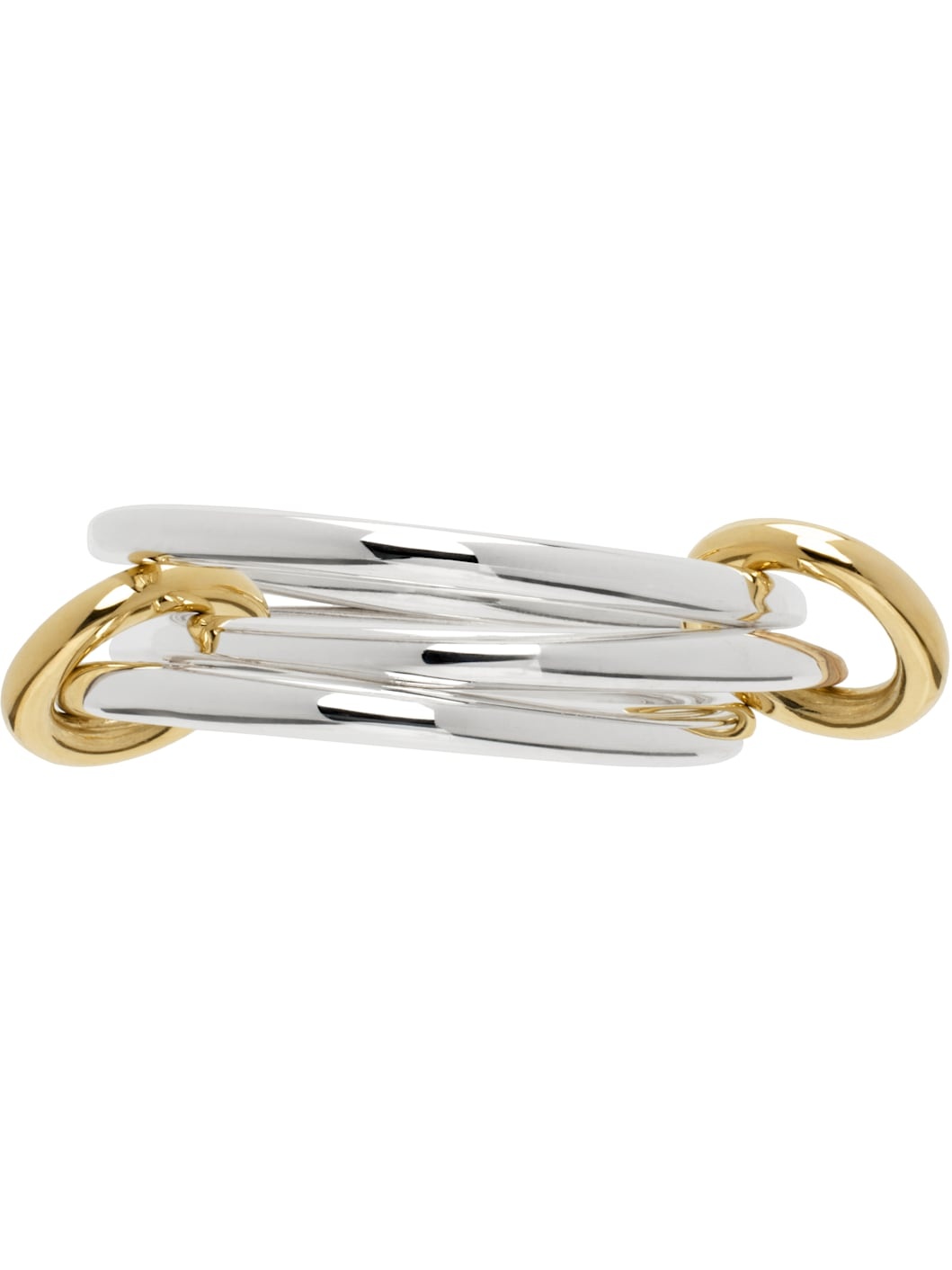 Handcrafted tiered band ring in sterling silver. O-rings in 18k gold. Supplier color: Silver