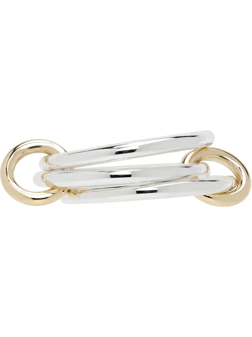Connected and stacked band rings in sterling silver. · Connecting hoops in solid 18k yellow gold · Hallmarking at inner band Supplier color: Silver/Gold 925 sterling silver, 18k gold. Made in United States 261558F011007