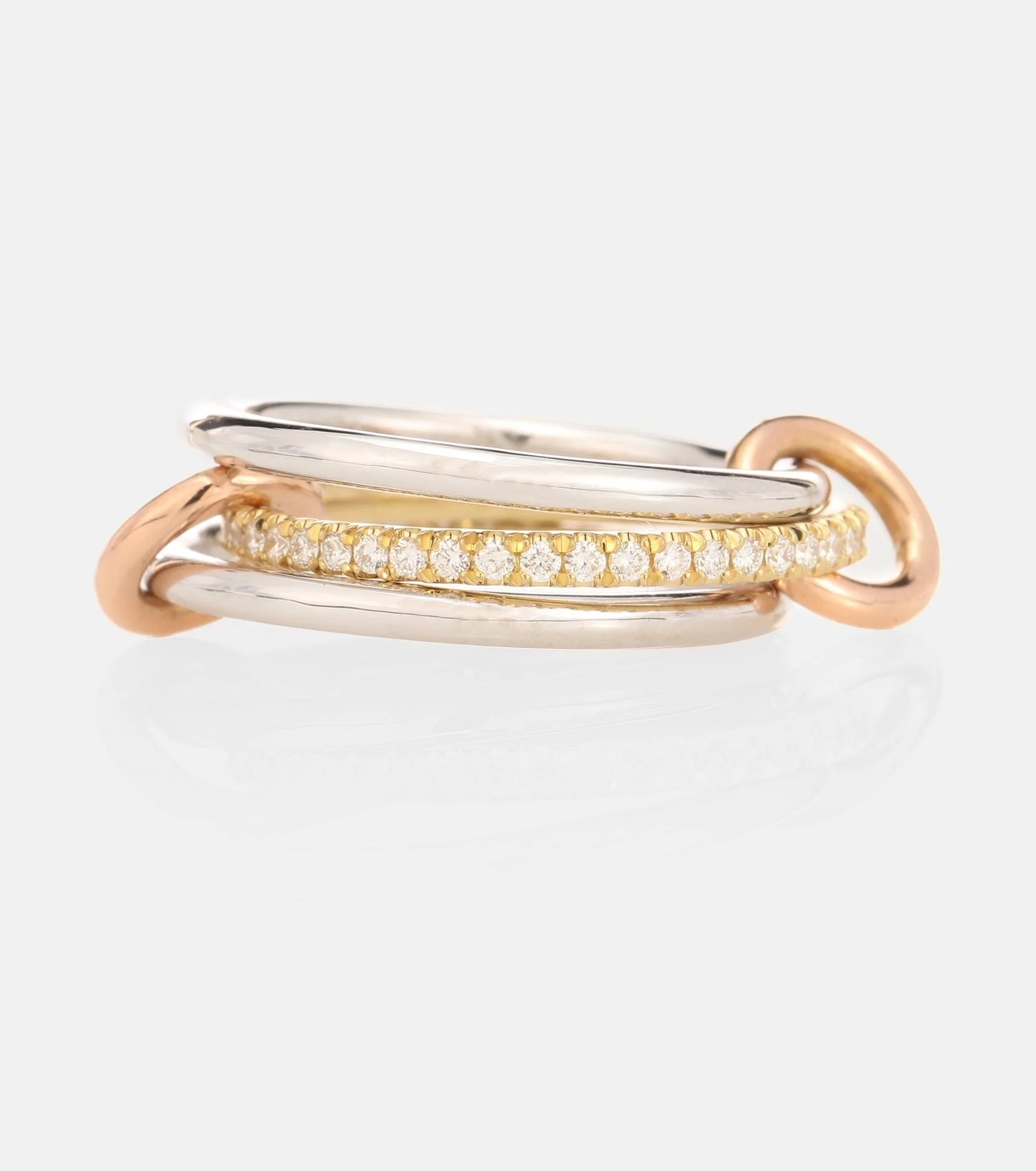 Spinelli Kilcollin's Sonny MX ring has been hand-crafted in Los Angeles from 18kt white and yellow gold and diamonds, with 18kt rose gold connectors. This style is equal parts modern and timeless, elevating day-to-day and evening looks alike. Product Details - Material: 18kt yellow gold, 18kt rose gold, 18kt white gold - Handmade in the USA - Stone I: diamonds, round-cut, pavé setting - Designer color name: White Gold - Item number: P00406985 Size & Fit - Max. width 10mm-0.4"
