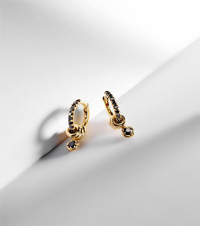 Zahra 18kt gold hoop earrings with black diamonds