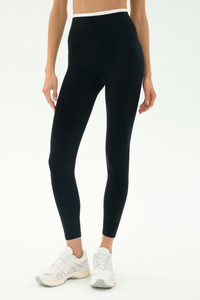 Our classic high waist Airweight legging is elevated even further with a contrast color waistband. The ultra luxe fabric has butter soft feel and fits like a second skin. The dual waistband makes this style more compressive. For a looser fit size up one size. BEST FOR: hot yoga, barre, Pilates. Model is H: 5’10” Bust 32 Waist 23.5 Hips 34.5” and wearing a size small THE FIT AIRWEIGHT: 81% nylon/ 19% spandex Moisture-wicking & Quick-dry technology.