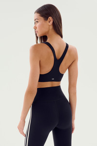 A stylish new addition to our airweight collection, this racer back bra boasts irresistible comfort and contrast stripe detail. Ultra luxe Airweight is feather light and buttery soft on your skin. BEST FOR: hot yoga, barre, Pilates. Model is 5’10” and wears a size small. THE FIT AIRWEIGHT: 81% nylon/ 19% spandex Moisture-wicking & Quick-dry technology.