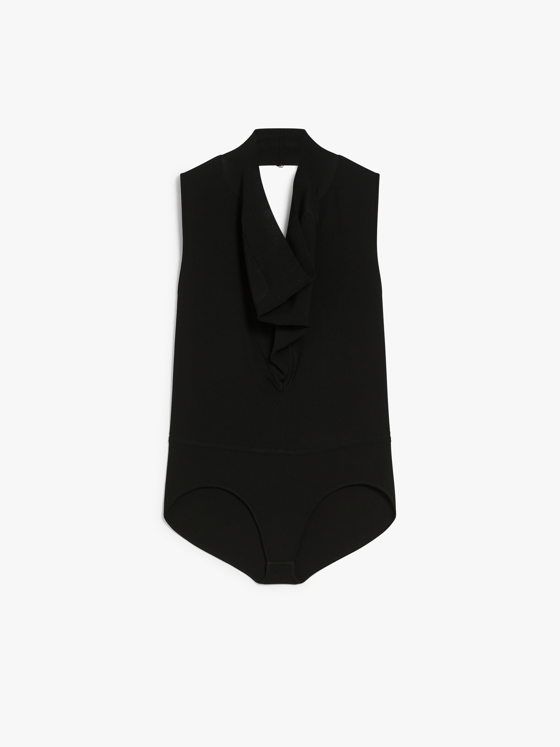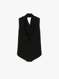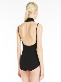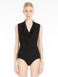 DETAILS Bodysuit in a stretch viscose knit, with wide neckline and draped front. The back remains uncovered, supported by thin shoulder straps. Fitted. COMPOSITION AND CARE 83% viscose, 17% polyester. Hand wash cold; do not bleach; do not tumble dry; flat drying in the shade; cool iron; professionally dry clean perchloroethylene - mild process; do not wet clean.; iron with a cloth between.; using neutral detergent. Distributed by Max Mara S.r.l., registered office in Reggio Emilia (Italy), Via Giulia Maramotti 4, 42124 (IT)
