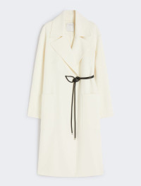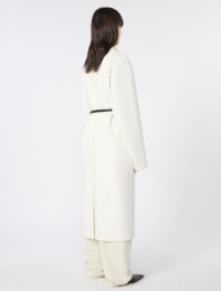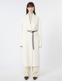 Long coat with a dressing gown construction, in a soft double wool The construction features an asymmetrical note on the right side, where the belt passes internally. - Pure wool double drap wrap coat - Wide lapel collar - Closure with tubular belt and asymmetrical detail on the right - Large side patch pockets - Wide fit Composition and Care Coat fabric 100% virgin wool; - except joining thread; with belt in polyester with polyurethane coating. Coat: do not wash; do not bleach; do not tumble dry; cool iron; professionally dry clean perchloroethylene - mild process; do not wet clean. Belt: do not wash; do not bleach; do not tumble dry; do not iron; do not dry clean; do not wet clean. Distributed by Max Mara S.r.l., registered office in Reggio Emilia (Italy), Via Giulia Maramotti 4, 42124