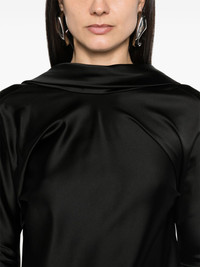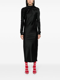 Abazio satin maxi dress Highlights - Black - Technical jersey - Satin finish - High neck - Open back - Long sleeves - Straight hem - Long length - Unlined Made in Italy Composition Acetate 74%, Polyamide 23%, Spandex/Elastane 3% SIZE & FIT Model measurements Height 5 ft 11 in(1.8 m) Bust/Chest 33.07 in(84 cm) Hips 37.4 in(95 cm) Waist 25.19 in(64 cm) FittingInformation Designed for a slim fit that sits just away from the body offering a close yet comfortable fit Made from a midweight stretch fabric, this piece offers elasticity and flexibility when worn This piece fits true to size – take your usual size Washing instructions Dry Clean Only