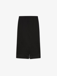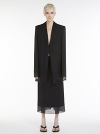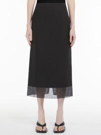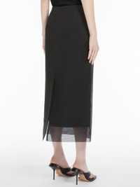 DETAILS Low-waist skirt in cotton- and linen-blend fabric with minimalist design and sole dart on the back. The construction includes a second tone-on-tone tulle layer that covers the skirt and extends beyond the hem. Fastened with concealed rear zip COMPOSITION AND CARE Fabric 100% silk; fabric 2 67% cotton, 33% flaxlinen; lining 69% acetate, 31% cupro. Do not wash; do not bleach; do not tumble dry; cool iron; professionally dry clean perchloroethylene - mild process; do not wet clean.; put this item into a string bag before washing it.; don’t iron the labels. Distributed by Max Mara S.r.l., registered office in Reggio Emilia (Italy), Via Giulia Maramotti 4, 42124 (IT)