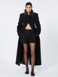 Feminine lines and a defined silhouette distinguish this double-sided fabric coat in a nubby wool blend, for a rich, textured effect. The focal points are the neck, the structured shoulders and the fitted waist. - Double-sided fabric coat in a washed-effect nubby wool blend - Fitted - Coated jersey shirt collar with hidden fastening - Sleeves with rounded cut and visible stitching - Lined - Regular fit Composition and Care Fabric 85% virgin wool, 15% polyamide; - except joining thread; lining 50% acetate, 50% viscose. Do not wash; do not bleach; do not tumble dry; cool iron; professionally dry clean perchloroethylene - mild process; do not wet clean.; wash the garment while it is fastened.; iron with a cloth between. Distributed by Max Mara S.r.l., registered office in Reggio Emilia (Italy), Via Giulia Maramotti 4, 42124