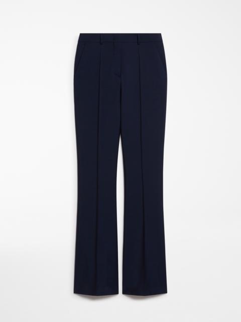 DETAILS Flared slim-fit trousers in wool-blend canvas. The menswear model-inspired design boasts a concealed fastening, belt loop detail on the waistband, slant side pockets and welt rear pockets. Branded internal waistband detail. COMPOSITION AND CARE 46% virgin wool, 30% mohair, 24% polyester. Do not wash; do not bleach; do not tumble dry; cool iron; professionally dry clean perchloroethylene - mild process; do not wet clean. Distributed by Max Mara S.r.l., registered office in Reggio Emilia (Italy), Via Giulia Maramotti 4, 42124 (IT)