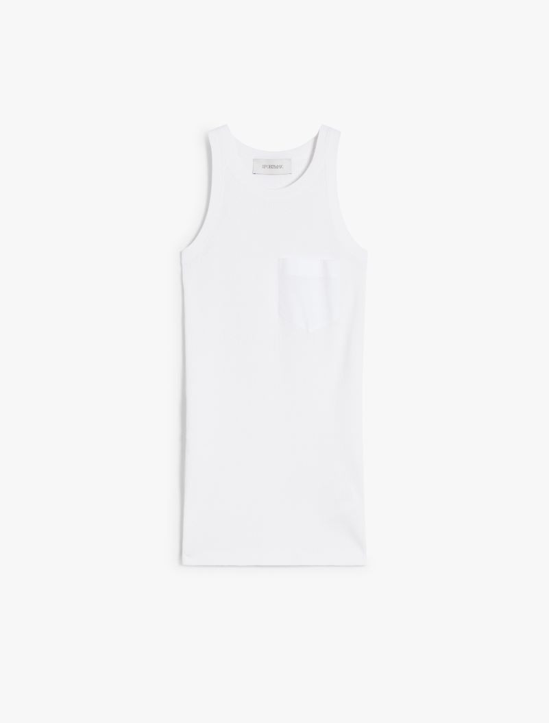 Tank top made of ribbed stretch viscose, with a cotton poplin patch pocket on the chest. The garment is completed by drop stitching on the armhole and narrower ribbed edges. Regular fit. Composition and Care Knitted fabric 83% viscose, 17% polyester; fabric 100% cotton. Hand wash cold (40°c max); do not bleach; do not tumble dry; flat drying in the shade; cool iron; professionally dry clean perchloroethylene - mild process; do not wet clean.; iron with a cloth between.; using neutral detergent. Distributed by Max Mara S.r.l., registered office in Reggio Emilia (Italy), Via Giulia Maramotti 4, 42124