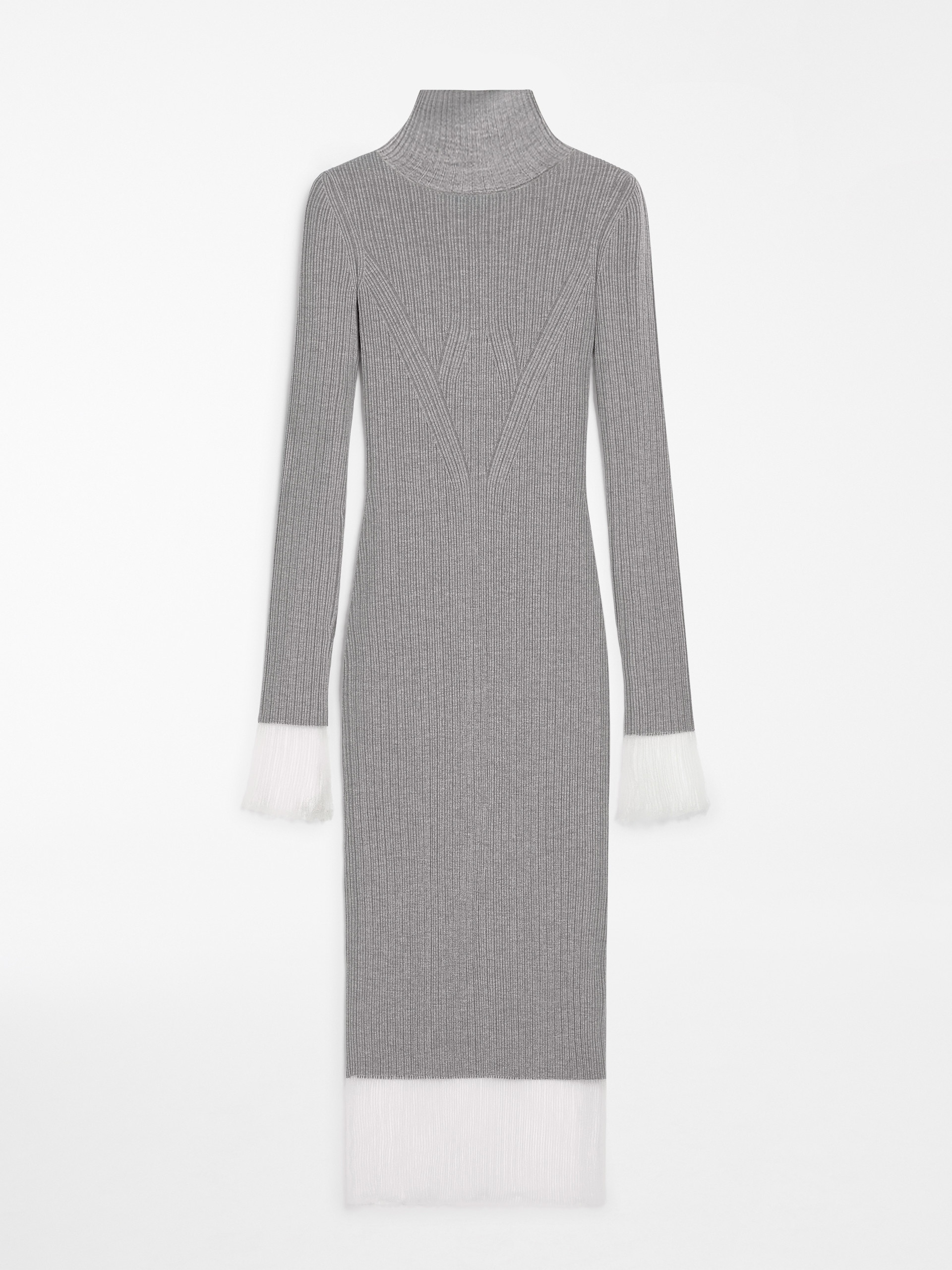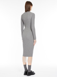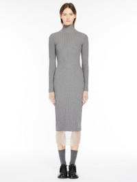 DETAILS Pure wool knit dress featuring a silhouette-defining and femininity-bestowing directional rib-knit pattern. The naturally snug model boasts a high neck and contrasting sheer yarn hems which create a high-cut band. Mid-calf length. COMPOSITION AND CARE Knitted fabric 80% virgin wool, 19% polyamide, 1% elastane; hems 100% polyamide. Do not wash; do not bleach; do not tumble dry; cool iron; professionally dry clean perchloroethylene - mild process; do not wet clean.; iron with a cloth between. Distributed by Max Mara S.r.l., registered office in Reggio Emilia (Italy), Via Giulia Maramotti 4, 42124 (IT)
