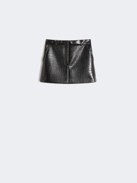 DETAILS Alligator embossed patent leather mini skirt. The design evokes men's tailored trousers, featuring slant pockets along the sides and a welt pocket on the back. - Mini skirt in patent leather with alligator effect bonded with jersey on the inside - Straight cut with low waist - Front opening with menswear-style hook fastening and zip - Slant side pockets and back welt pockets - Lined - Regular fit COMPOSITION AND CARE Jersey fabric 100% polyester; coating polyurethane; lining 70% acetate, 30% polyester. Machine wash cold delicate cycle; do not bleach; do not tumble dry; line drying in the shade; do not iron; do not dry clean.; wash the garment while it is fastened. Distributed by Max Mara S.r.l., registered office in Reggio Emilia (Italy), Via Giulia Maramotti 4, 42124 (IT) Collection: Sportmax Product code: 2101066106002 - SPXGLEBA