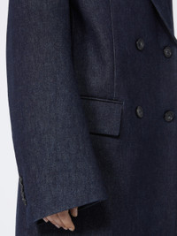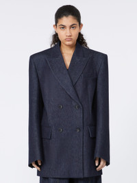 DETAILS A metropolitan take on the double-breasted blazer, crafted from non-stretch denim. The loose fit, complete with statement shoulders, adds a bold touch to the design. Lined blazer in authentic blue non-stretch denim with a raw dark-light wash Oversized fit Peak-lapel collar Double-breasted button fastening Wide shoulders and a central rear slit Loose fit COMPOSITION AND CARE Fabric 100% cotton; lining 70% acetate, 30% polyester. Do not wash; do not bleach; do not tumble dry; cool iron; professionally dry clean perchloroethylene - mild process; do not wet clean.; wash the garment while it is fastened.; protect buttons before washing.; take care when wearing light-coloured clothes or accessories because, with the heat of the body, the indigo fabric , may fade and stain. be careful while sitting on light coloured surfaces, especially if wet. wash garments separately and always turned inside out. hang the garment turned inside out by avoiding to expose it to direct sunlight. avoid removing isolated stains. Distributed by Max Mara S.r.l., registered office in Reggio Emilia (Italy), Via Giulia Maramotti 4, 42124 (IT)