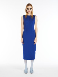DETAILS Crew-neck dress made of technical viscose jersey with a compact feel. Sleeveless with a sheath-dress line, completed by geometric seams and vertical darts, which define the silhouette. Concealed zip on the back. COMPOSITION AND CARE Jersey fabric 47% viscose, 40% cotton, 9% polyamide, 4% elastane; upper lining 62% acetate, 38% polyester. Do not wash; do not bleach; do not tumble dry; cool iron; professionally dry clean perchloroethylene - mild process; do not wet clean.; iron with a cloth between. Distributed by Max Mara S.r.l., registered office in Reggio Emilia (Italy), Via Giulia Maramotti 4, 42124 (IT)