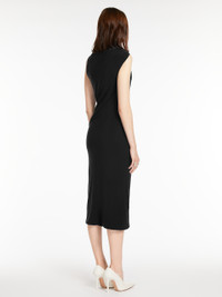 DETAILS Feminine, slim-fit dress in fluid-hand technical jersey fabric. The asymmetrical design boasts knot detail on the right shoulder and a sleeveless cut on the left side. COMPOSITION AND CARE 95% polyester, 5% elastane. Machine wash cold delicate cycle; do not bleach; do not tumble dry; flat drying in the shade; cool iron; professionally dry clean perchloroethylene - mild process; professional wet cleaning - very mild process.; wash separately.; iron with a cloth between.; using neutral detergent.; turn the articles inside out before washing.; don’t iron the labels.; to be ironed on reverse. Distributed by Max Mara S.r.l., registered office in Reggio Emilia (Italy), Via Giulia Maramotti 4, 42124 (IT)