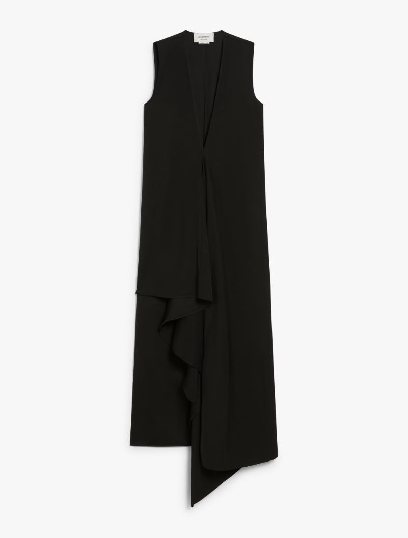 Long dress in washed viscose twill fabric featuring a plunging V-neck front. The left panel extends into a soft ruffle, creating asymmetry at the hem. Composition and Care 100% viscose. Do not wash; do not bleach; do not tumble dry; cool iron; professionally dry clean perchloroethylene - mild process; do not wet clean.; put this item into a string bag before washing it. Distributed by Max Mara S.r.l., registered office in Reggio Emilia (Italy), Via Giulia Maramotti 4, 42124