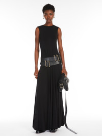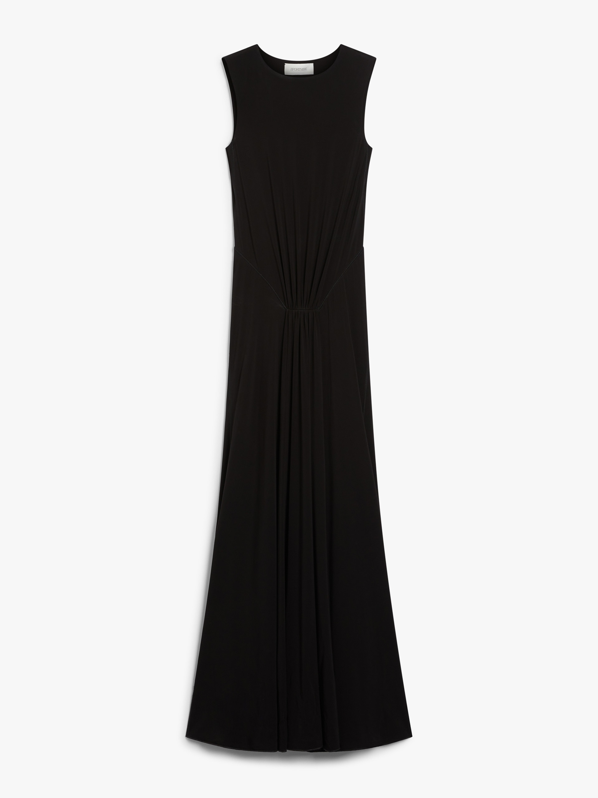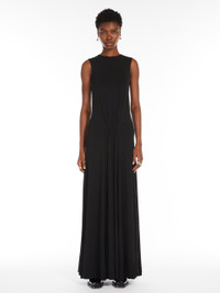 DETAILS Long, sleeveless dress made of stretch organza jersey. The bodice fits snugly, then gracefully flares out into a fuller skirt, enhanced by the gathered waist and diagonal seams at the hips. Regular fit. COMPOSITION AND CARE 95% viscose, 5% elastane. Machine wash cold delicate cycle; do not bleach; do not tumble dry; flat drying in the shade; cool iron; professionally dry clean perchloroethylene - mild process; professional wet cleaning - very mild process.; iron with a cloth between.; using neutral detergent. Distributed by Max Mara S.r.l., registered office in Reggio Emilia (Italy), Via Giulia Maramotti 4, 42124 (IT)