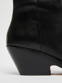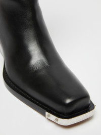 DETAILS Cowboy boots in low-sheen calfskin with an internal zip and square toe. The protruding welt and shaped heel are completed by a metallic band on the front. COMPOSITION AND CARE Upper in calf; lining in lamb leather; sole in leather. Distributed by Max Mara S.r.l., registered office in Reggio Emilia (Italy), Via Giulia Maramotti 4, 42124 (IT)