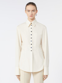 DETAILS Long shirt made of pure cotton poplin with a tight fit and a feminine line emphasized by the cut at the waist. Model with personalized metal snap buttons and high cuff with masculine-inspired button placket. Pure cotton poplin long shirt. Fitted Shirt collar and cuffs with man-made studs Visible closure with metal snap buttons and rounded hem Fitted waist and darts stitched on both the front and back Regular fit COMPOSITION AND CARE 100% cotton. Machine wash cold delicate cycle; do not bleach; do not tumble dry; line drying in the shade; cool iron; professionally dry clean perchloroethylene - mild process.; put this item into a string bag before washing it.; wash the garment while it is fastened.; turn the articles inside out before washing. Distributed by Max Mara S.r.l., registered office in Reggio Emilia (Italy), Via Giulia Maramotti 4, 42124 (IT)