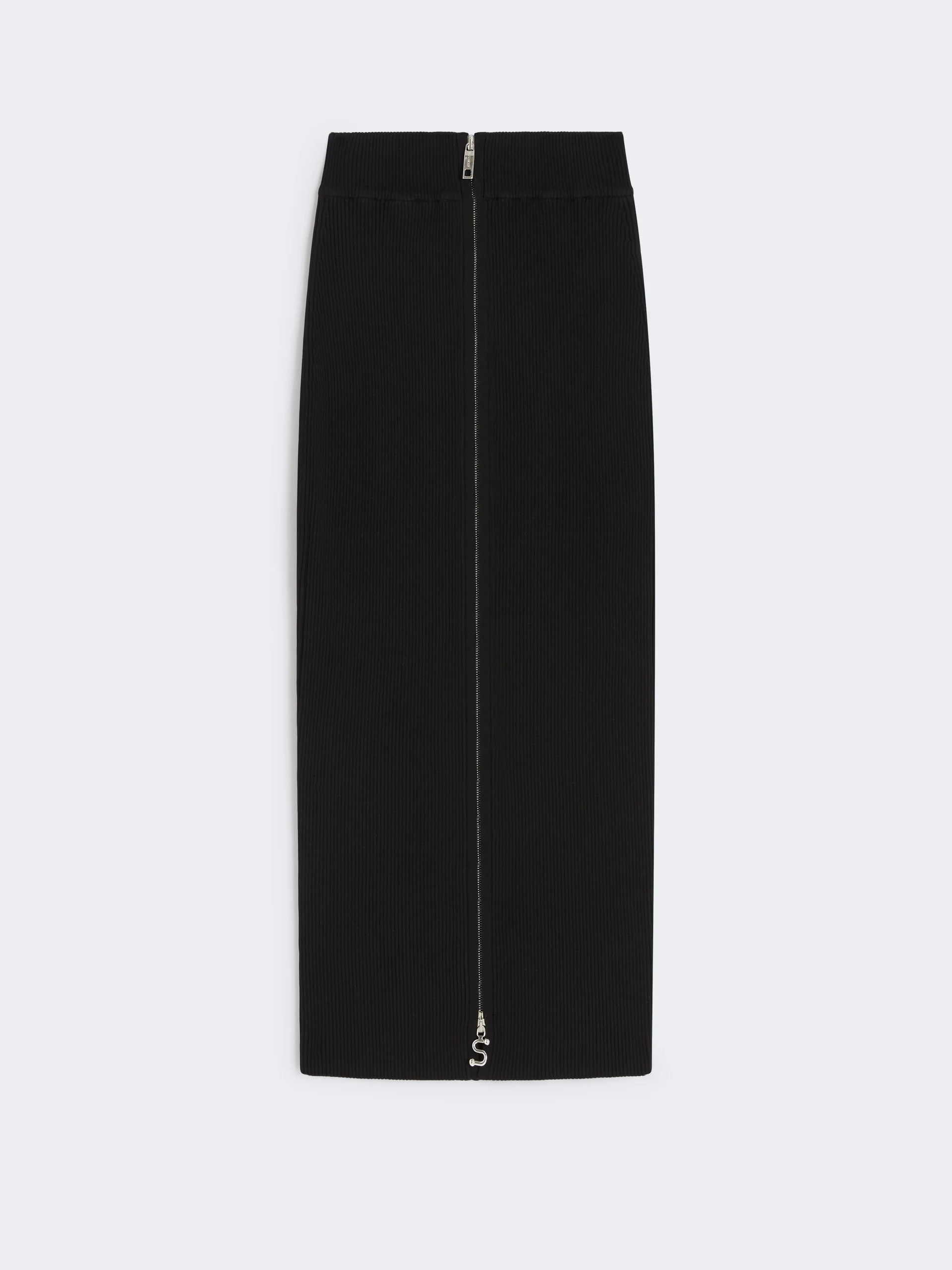 DETAILS Stretch knit pencil skirt with narrow ribs, double-slider metal front zip and personalized S-shaped puller at the hem. Ribbed detail at the waist, with high profile. Fitted. Stretch viscose skirt Fitted Double slider zip fastening and personalized S-shaped bottom puller Detail of compact ribs at the waist Fitted COMPOSITION AND CARE 58% viscose, 25% polyester, 16% polyamide, 1% elastane. Hand wash cold (40°c max); do not bleach; do not tumble dry; flat drying in the shade; cool iron; professionally dry clean perchloroethylene - mild process; do not wet clean.; iron with a cloth between.; using neutral detergent.; protect accessories before washing. Distributed by Max Mara S.r.l., registered office in Reggio Emilia (Italy), Via Giulia Maramotti 4, 42124 (IT)