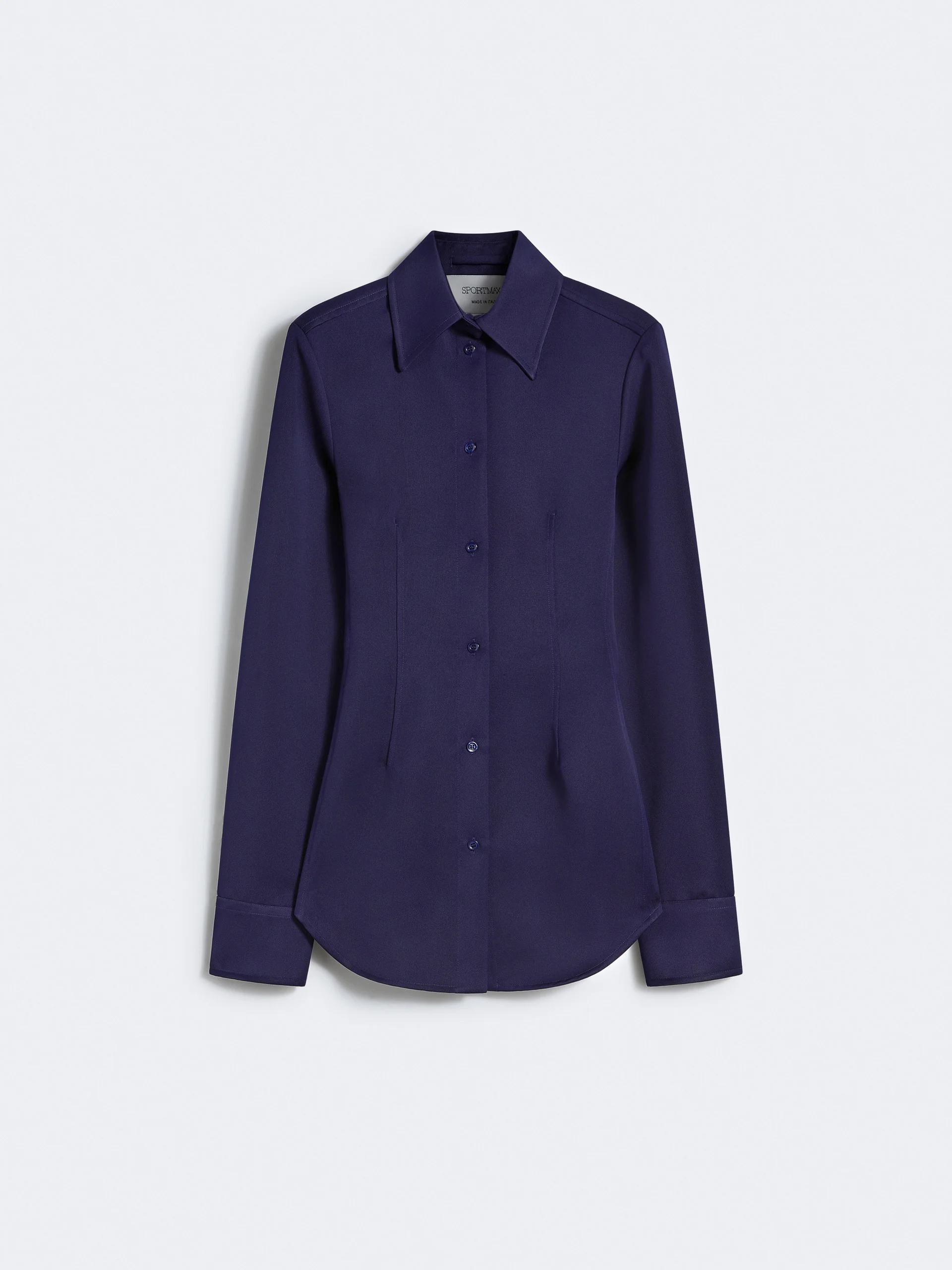 DETAILS Feminine lines and a highlighted waistline characterise this shirt with deep pleats and shaped side panels, emphasised by three-dimensional stitching. Very evident rounded hem. Technical-fabric shirt Fitted Shirt collar with visible buttoning Three-dimensional stitching pattern Rounded hem Slim fit COMPOSITION AND CARE 100% polyester. Hand wash cold (40°c max); do not bleach; do not tumble dry; line drying in the shade; cool iron; professionally dry clean perchloroethylene - mild process; do not wet clean.; wash the garment while it is fastened.; turn the articles inside out before washing. Distributed by Max Mara S.r.l., registered office in Reggio Emilia (Italy), Via Giulia Maramotti 4, 42124 (IT)