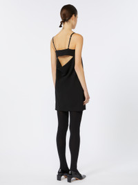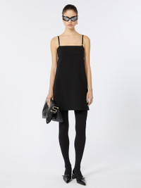 DETAILS Knit dress with a feminine and tight fit. The straight neckline features adjustable lingerie-style shoulder straps, with a metallic logo on the front. The back features a high band and cut out that leaves the back exposed with a draped effect. Stretch viscose blend dress Fitted Straight neckline with adjustable shoulder straps and metallic logo Cut out motif on the back COMPOSITION AND CARE 70% viscose, 25% polyamide, 5% elastane. Do not wash; do not bleach; do not tumble dry; cool iron; professionally dry clean perchloroethylene - mild process; do not wet clean.; iron with a cloth between. Distributed by Max Mara S.r.l., registered office in Reggio Emilia (Italy), Via Giulia Maramotti 4, 42124 (IT)