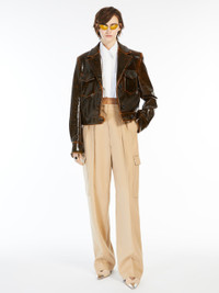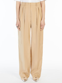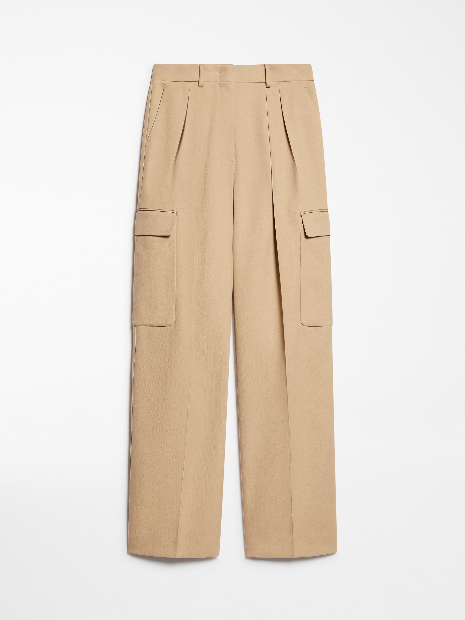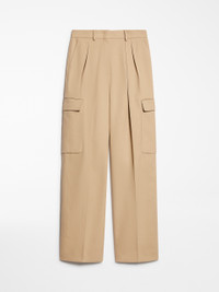 DETAILS Cargo trousers in double-faced cotton and viscose fabric. The low-rise model boasts a branded internal waistband and pleated detail which enhances the leg volume. The slant side pockets complement the maxi patch pockets at the sides and the flap-adorned rear pockets. The pressed pleat detail bestows a more formal touch. Trouser crease for a more formal note. COMPOSITION AND CARE 55% cotton, 45% viscose. Do not wash; do not bleach; do not tumble dry; cool iron; professionally dry clean perchloroethylene - mild process; do not wet clean. Distributed by Max Mara S.r.l., registered office in Reggio Emilia (Italy), Via Giulia Maramotti 4, 42124 (IT)
