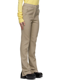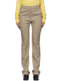 Straight-leg virgin wool twill trousers in tan. · Mid-rise · Concealed zippered vent at cuffs Supplier color:Turtledove 100% virgin wool. Made in Poland 221301F087000