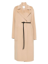 belted coat Highlights - Light brown - Belted waist - Two front patch pockets - Wide notch lapels Imported Composition Virgin Wool 100% SIZE & FIT Model measurements Height 5 ft 10 in(1.78 m) Bust/Chest 31.49 in(80 cm) Hips 37 in(94 cm) Waist 23.62 in(60 cm) FittingInformation Designed to be unstructured, offering a loose fit throughout The tie fastening gives an adaptable and personalised fit Made from a midweight non-stretch fabric, this piece offers minimal elasticity when worn