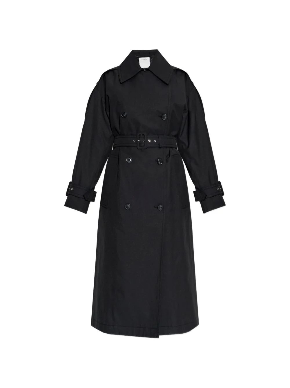 belted double-breasted coat Highlights - Black - Double-breasted - Belt - Button fastening - Cuff straps - Long sleeves Made in Italy Composition Outer: Polyester 100%