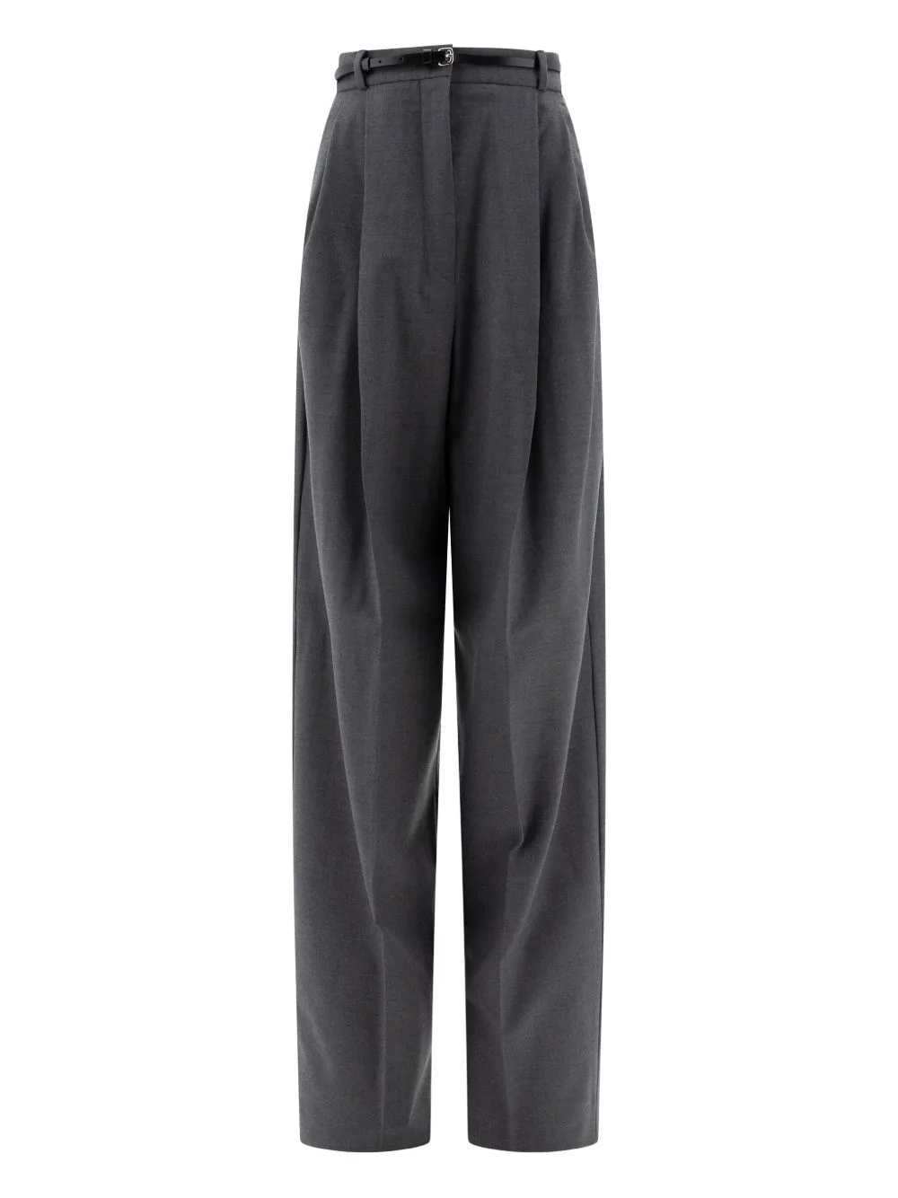 belted tailored trousers Highlights - Grey - Dart detailing - Belted waist - Side pockets - Jetted pockets Made in Italy Composition Wool 95%, Elastane 5% Washing instructions Read Manufacturer Guidelines
