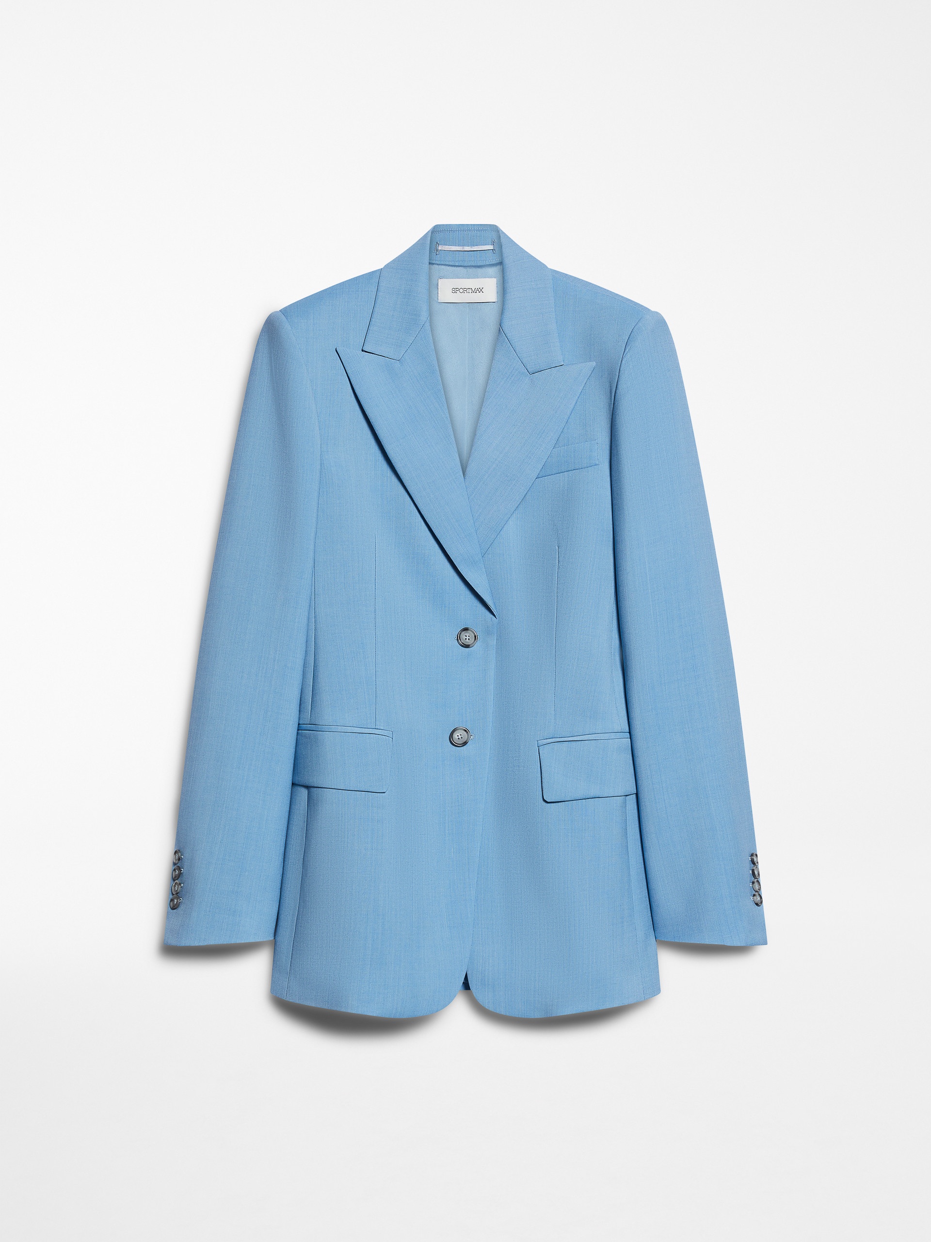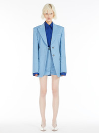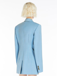 DETAILS Single-breasted blazer made of wool-blend canvas, with a slim fit and feminine line. The construction is tailored and features peak lapels with melton undercollar detail, pockets with flap and double welt and a centre-back vent for perfect mobility. The darts on both the front and back outline the silhouette. Lined. COMPOSITION AND CARE Fabric 46% virgin wool, 30% mohair, 24% polyester; lining 70% acetate, 30% polyester; sleeves lining 97% viscose, 3% acetate. Do not wash; do not bleach; do not tumble dry; cool iron; professionally dry clean perchloroethylene - mild process; do not wet clean.; put this item into a string bag before washing it.; wash the garment while it is fastened. Distributed by Max Mara S.r.l., registered office in Reggio Emilia (Italy), Via Giulia Maramotti 4, 42124 (IT)