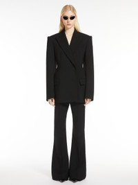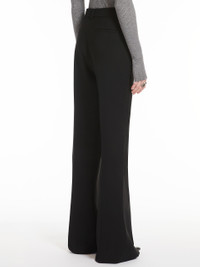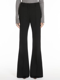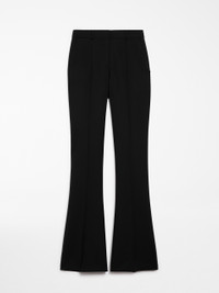 DETAILS Trousers fitted at the top with flared line at the hem.The construction is inspired by menswear, with concealed fastening, belt loops on the waistband and trouser crease on the front and back. The slanted pockets on the sides and welt pockets on the back. Customised internal waistband detail. COMPOSITION AND CARE Fabric 96% virgin wool, 4% elastane; - except joining thread. Do not wash; do not bleach; do not tumble dry; cool iron; professionally dry clean perchloroethylene - mild process; do not wet clean. Distributed by Max Mara S.r.l., registered office in Reggio Emilia (Italy), Via Giulia Maramotti 4, 42124 (IT)