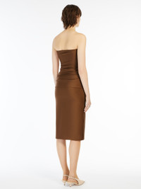 DETAILS Figure-hugging Lycra jersey dress with a shiny finish and a special fastening that divides the skirt and top. The interior is lined with the same material for comfort and a substantial feel. The versatile construction allows it to be worn as a single piece, as separates or with the top gathered at the waist for a bandeau effect. COMPOSITION AND CARE Jersey fabric 80% polyamide, 20% elastane; lining 80% polyamide, 20% elastane. Machine wash cold delicate cycle; do not bleach; do not tumble dry; flat drying in the shade; cool iron; professionally dry clean perchloroethylene - mild process; professional wet cleaning - very mild process.; iron with a cloth between.; using neutral detergent. Distributed by Max Mara S.r.l., registered office in Reggio Emilia (Italy), Via Giulia Maramotti 4, 42124 (IT)