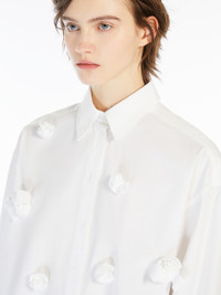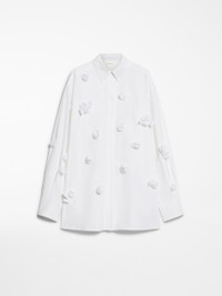 DETAILS Oversized mannish shirt in pure cotton poplin fabric. The entire garment is decorated with hand-embroidered three-dimensional roses, made with the same fabric. Completed with concealed fastening, wide double-button cuff and straight hem. COMPOSITION AND CARE 100% cotton. Hand wash cold; do not bleach; do not tumble dry; flat drying in the shade; cool iron; do not dry clean; do not wet clean.; iron with a cloth between.; using neutral detergent.; don’t rub.; turn the articles inside out before washing.; to be ironed on reverse.; do not iron the decoration. Distributed by Max Mara S.r.l., registered office in Reggio Emilia (Italy), Via Giulia Maramotti 4, 42124 (IT)