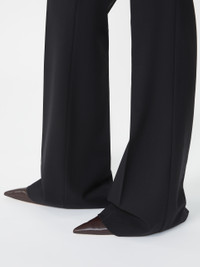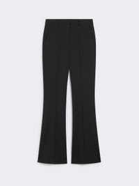 DETAILS Tight-fitting trousers with a flared hem, inspired by classic men's tailoring details. Low waist. Stretch wool knit trousers Tight fit with flared line at the hem and low waist Menswear-style hook fastening Customised waistband interior Slant side pockets and back welt pockets Trouser crease front and back Regular fit COMPOSITION AND CARE 95% virgin wool, 5% elastane. Do not wash; do not bleach; do not tumble dry; cool iron; professionally dry clean perchloroethylene - mild process; do not wet clean. Distributed by Max Mara S.r.l., registered office in Reggio Emilia (Italy), Via Giulia Maramotti 4, 42124 (IT)