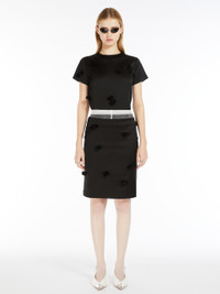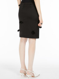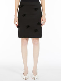 DETAILS Feminine, slim-fit stretch satin skirt. Concealed back zip and decorated with all-over hand-embroidered rose detail. Stretch fabric lining. COMPOSITION AND CARE Fabric 74% acetate, 23% polyamide, 3% elastane; lining 62% acetate, 38% polyester. Hand wash cold; do not bleach; do not tumble dry; flat drying in the shade; cool iron; do not dry clean; do not wet clean.; iron with a cloth between.; using neutral detergent.; don’t rub.; turn the articles inside out before washing.; to be ironed on reverse.; do not iron the decoration. Distributed by Max Mara S.r.l., registered office in Reggio Emilia (Italy), Via Giulia Maramotti 4, 42124 (IT)