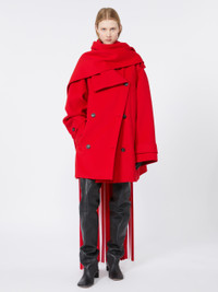 DETAILS Oversized, short trench coat with rigid lines on the fastening and maxi side welts for the pockets. The raised collar, back storm flap and epaulettes are inspired by traditional styles. Trench coat in double-face pure wool Loose fit Raised collar with two buttons Visible button side fastening Belted waist and pockets with large welt Regular fit COMPOSITION AND CARE Fabric 100% virgin wool; - except joining thread. Do not wash; do not bleach; do not tumble dry; cool iron; professionally dry clean perchloroethylene - mild process; do not wet clean.; put this item into a string bag before washing it.; wash the garment while it is fastened.; turn the articles inside out before washing. Distributed by Max Mara S.r.l., registered office in Reggio Emilia (Italy), Via Giulia Maramotti 4, 42124 (IT)