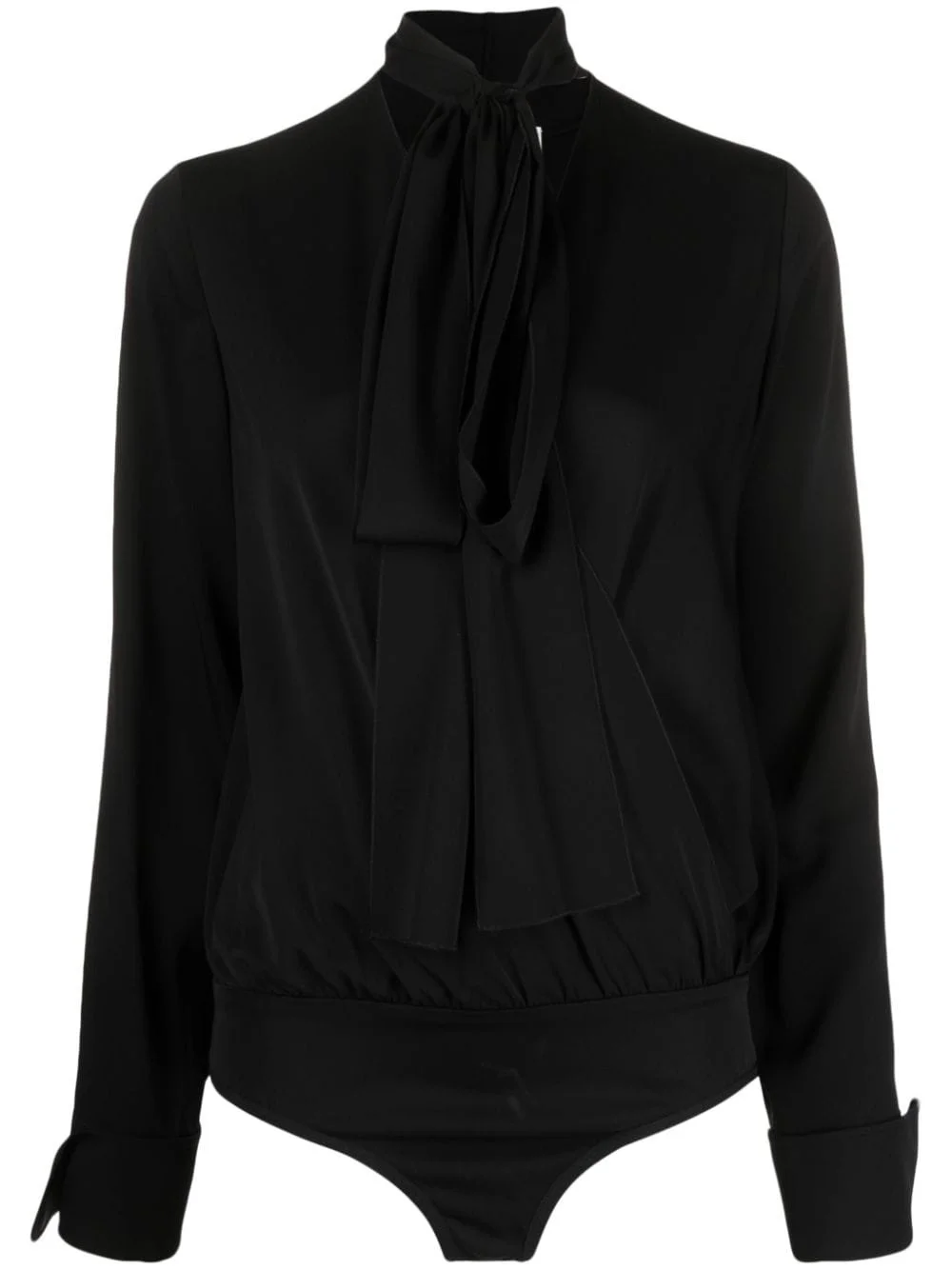 bow-detail bodysuit Highlights - Black - Silk blend - Bow detailing - Front tie fastening - Long sleeves - Buttoned cuffs - Just a reminder that this piece must be tried on over your own garments. Made in Italy Composition Silk 93%, Spandex/Elastane 7% Washing instructions Dry Clean Only