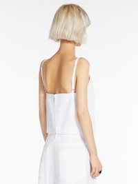 DETAILS Boxy-fit sleeveless straight-neck top in washed cotton canvas. The design boasts adjuster-fitted spaghetti straps and vertical-welt front pockets, in addition to a flap-covered metal zip fastening at the back, complete with visible hook-and-bar detail. COMPOSITION AND CARE Fabric 100% cotton; lining 100% cotton. Hand wash cold; do not bleach; do not tumble dry; line drying in the shade; cool iron; professionally dry clean perchloroethylene - mild process; do not wet clean.; don’t iron the labels. Distributed by Max Mara S.r.l., registered office in Reggio Emilia (Italy), Via Giulia Maramotti 4, 42124 (IT)